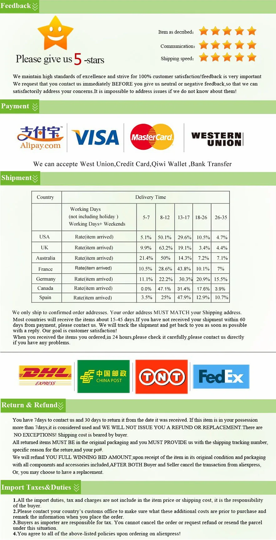 Quality is the first with best service. customers all are our friends.